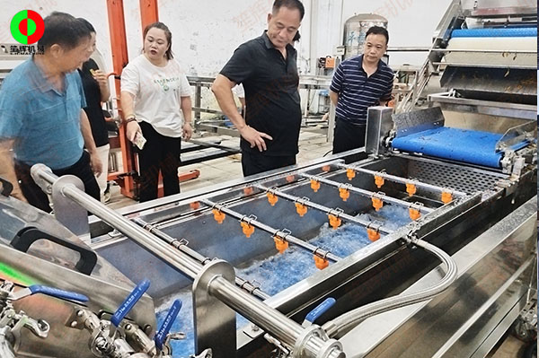 客戶來廠測試驗貨果蔬清洗加工設(shè)備!